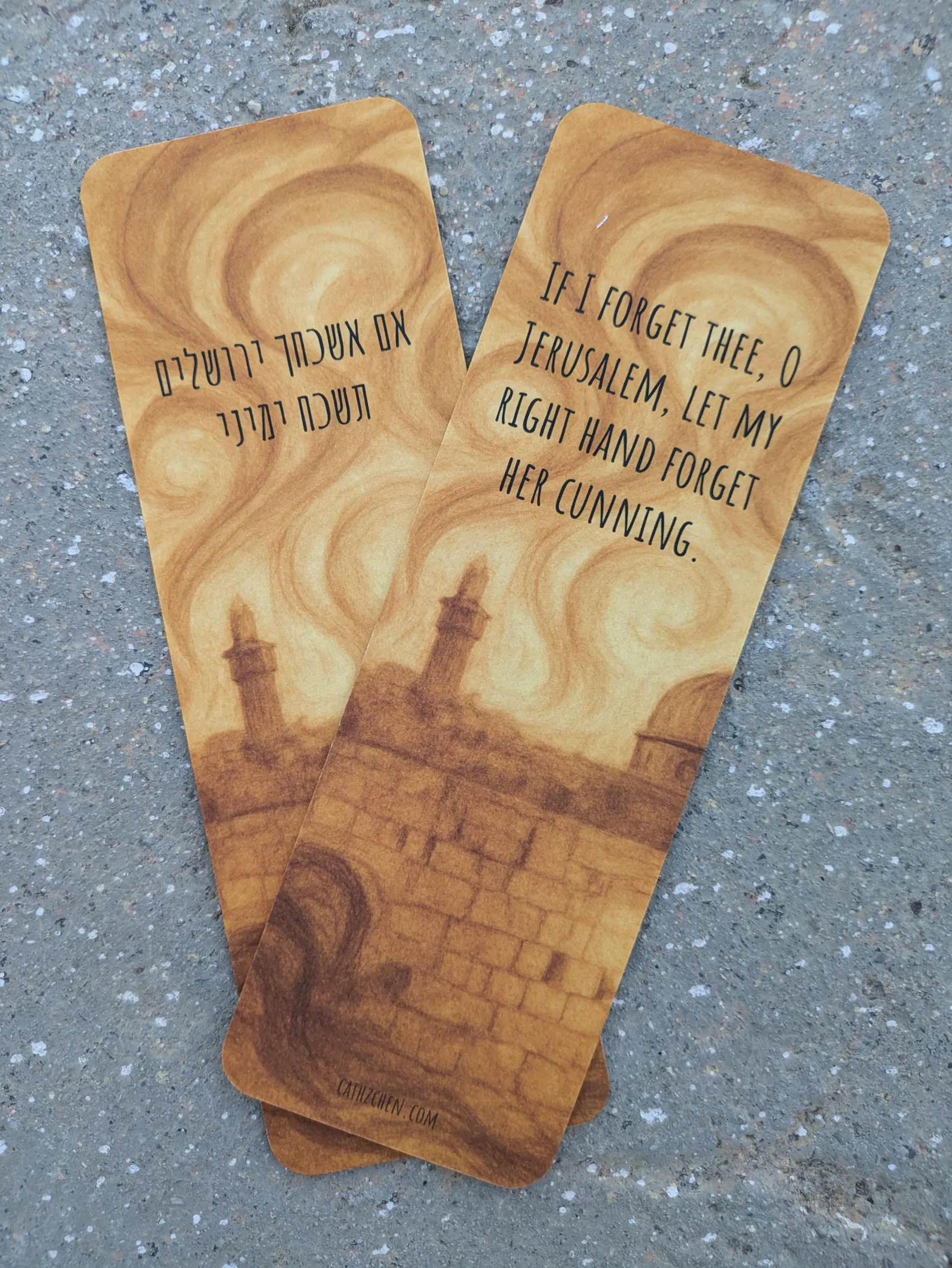 Featuring Psalm 137:5 in Hebrew and English: "If I forget thee, O Jerusalem, let my right hand forget her cunning."